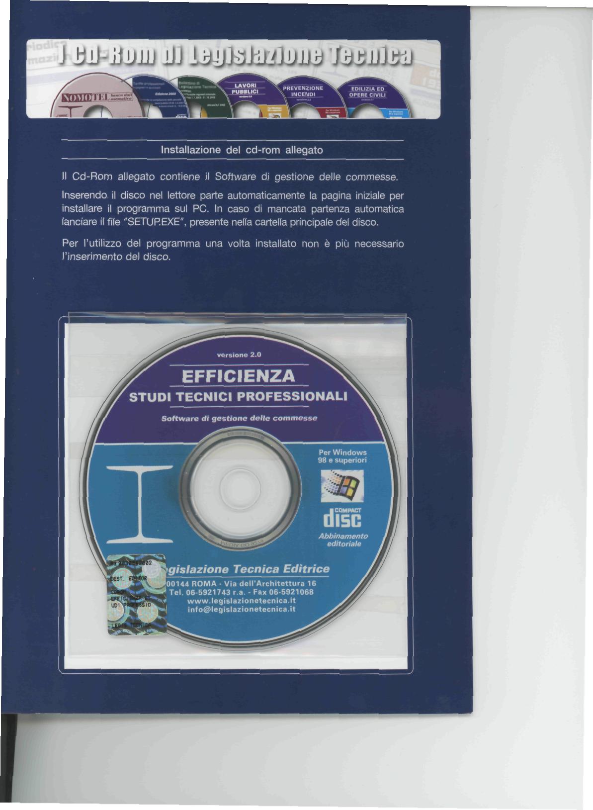 Il Cd allegato riporta quindi il software applicativo a disposizione dell'utente per poter applicare con sicurezza e precisione, adattandolo alle specifiche lavorazioni del proprio studio, i coDcetti illustrati Del volume.